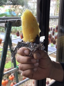 森田農園、秋から冬にかけての毎年恒例の午前のおやつ、焼き芋です。
